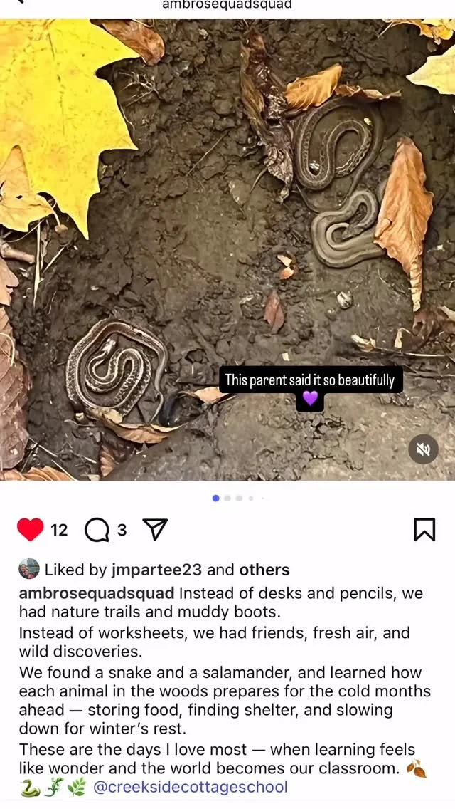 My Why: I have known since I was in elementary school that I wanted to be a teacher-everyone around me knew! I am an extreme book lover and cannot read enough books in a year. I started teaching outdoor education to children 18 months-8 years old (Tinkergarten) when my oldest was only two years old and found true joy in seeing what kids could learn from nature itself. During the pandemic, I started to feel a draw toward wanting a nature infused education for my own children. I wanted them to be free from the many hours of state testing and instead have many hours to be outside and explore: digging in mud, catching grasshoppers, and making leaf boats to float down the creek while also watching them grow academically.